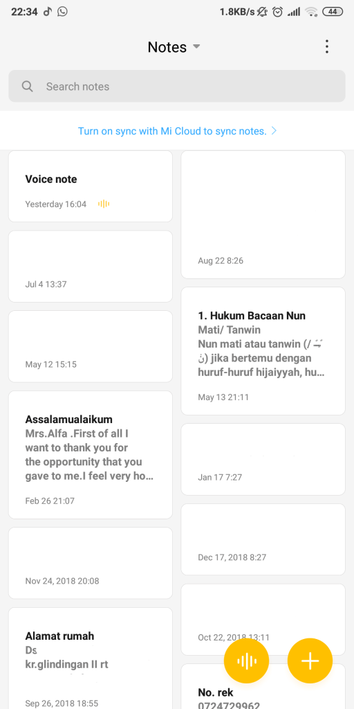 Tidak semua smatphone memiliki fitur notes. Notes ini digunakan untuk mencatat hal-hal penting yang perlu kita ingat,bahkan notes sekarang bukan hanya berbentuk tulisan namun juga dapat berbentuk voice record yang dapat digunakan saat kita tidak mrmiliki banyak waktu untuk menulis hal penting tersebut.