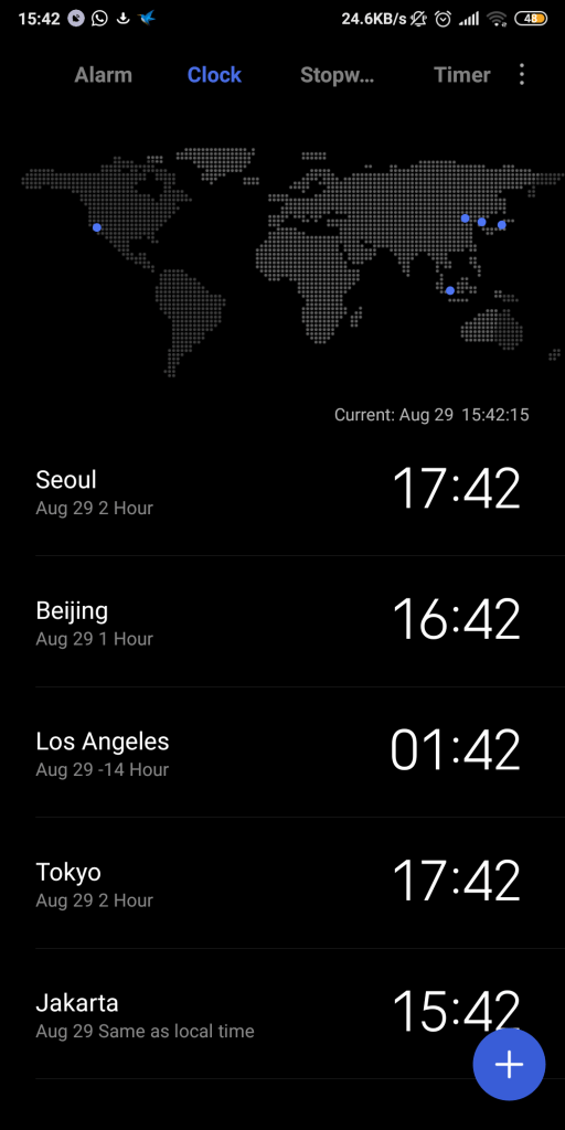 clock/jam merupakan fitur bawaan smartphone yang berfungsi menunjukkan waktu.Tidak hanya itu,dalam fitur clock kita dapat menyetel alarm,menggunakan stopwatch dan timer.
